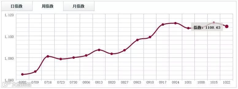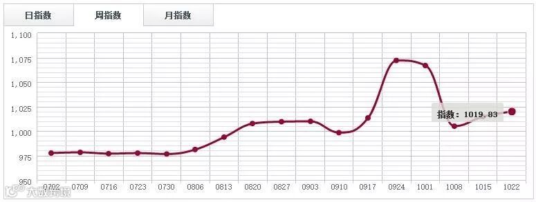 人造板分类指数持续上扬本周报收1019.83点,环比上涨5.13点,涨幅0.51%,市场成交量环比增加1.87%。四川大西南报收1190.79点,环比上涨0.90%;上海福人报收823.64点,微涨0.12%;广东鱼珠报收1070.27点,微涨0.22%。