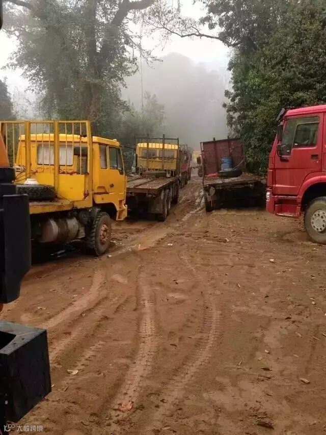 遇到泥泞的路段只能靠其他车拖曳,或者等装载机来救援。