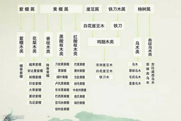 当然,归并为同一个树种并不代表其材质完全一致,同一树种下不仅有不同的变种,在不同的产地也会有不同的特征。红木原木市场及红木家具厂家较为一致的认识是: