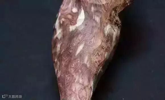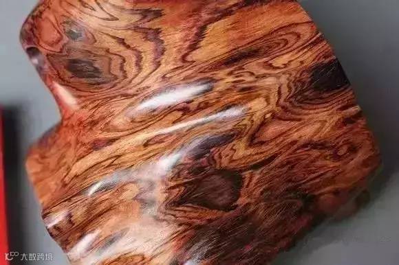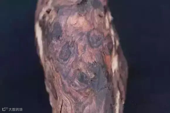 豹皮纹如同猎豹皮毛上的花纹一样,呈斑点状展开,此纹理在海南黄花梨中十分少见。豹皮纹的形成原因有两个,必须同时满足才可能出现,请注意,是可能,而不是一定出现。