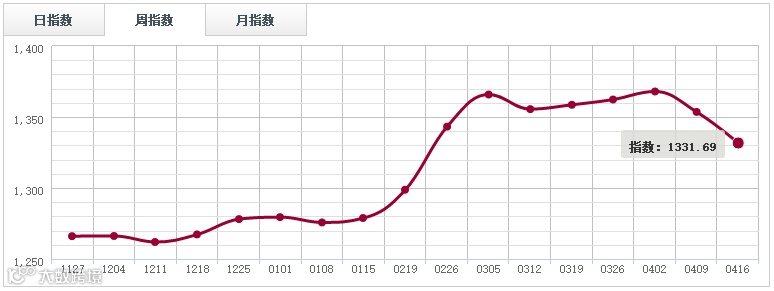 鱼珠进口原木指数本周报收998.16点,涨0.44%。进入4月中旬,市场交投情况依然不甚乐观,成交量继续呈现萎缩状态。具体来看,本周共有5个代表品成交量出现萎缩,所幸跌幅均较小,瓦泰豆和菠萝格跌幅居前分别减少了2.58%和1.97%。价格方面,本周代表品价格指数红盘略占上风,共有6个代表品价格指数收红,其中菠萝格涨1.15%,成交价报3700元/立方米;甘拔涨1.12%,成交价报2650元/立方米。鱼珠国产原木指数本周报收1112.21点,涨0.30%,成交量减少0.92%。其中樟子松成交价报1710元/立方米;椴木成交价报4200元/立方米。