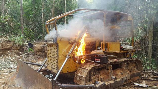 阿速坡林业警察通告:警方抓获了一个越南盗伐木的团伙。由于伐木地点离老越边境几公里,该团伙利用推土机开路,直接偷渡进入阿速坡境内,警方接到媒体的报料后迅速出警,成功了抓获了这一团伙。在此非常感谢该媒体的用心。