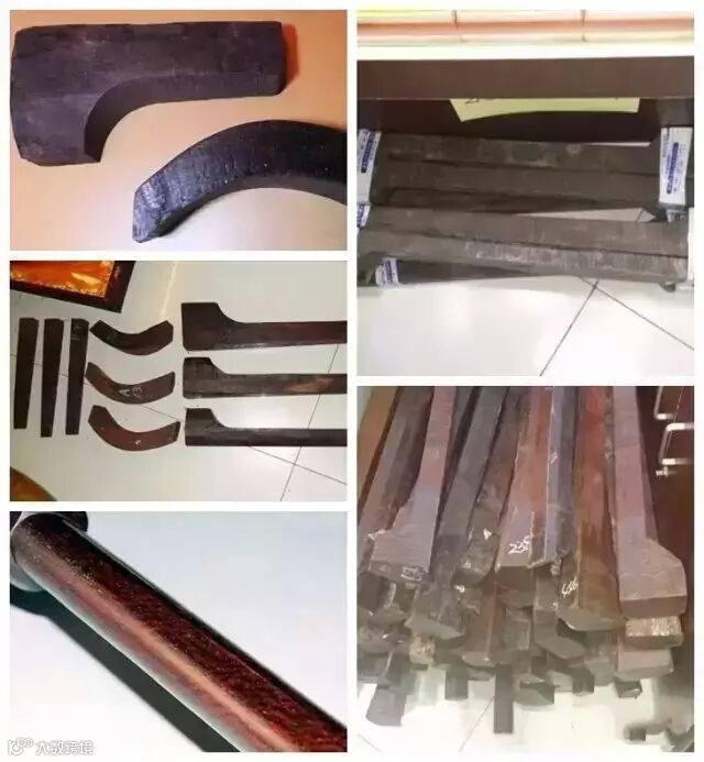 起初几乎没有木友注意这批日本进口紫檀材料的型状组合,经过持续买入不同形状的原料,以及在网络上对日本文化中紫檀用途的了解,我终于发现了这批日本进口紫檀的真实用途。是制作日本人称作三味线、咱们叫三弦儿的原材料,而不是所谓下脚料,通过对原料形状的拼接与三味线的直观对比,以及通过津轻三味线会所展馆内拍摄展品得到了吻合一致的答案。在料堆中发现的加工了一半的琴头、以及没被卖到北京的弦把、当然还有价值最高的琴杆。
