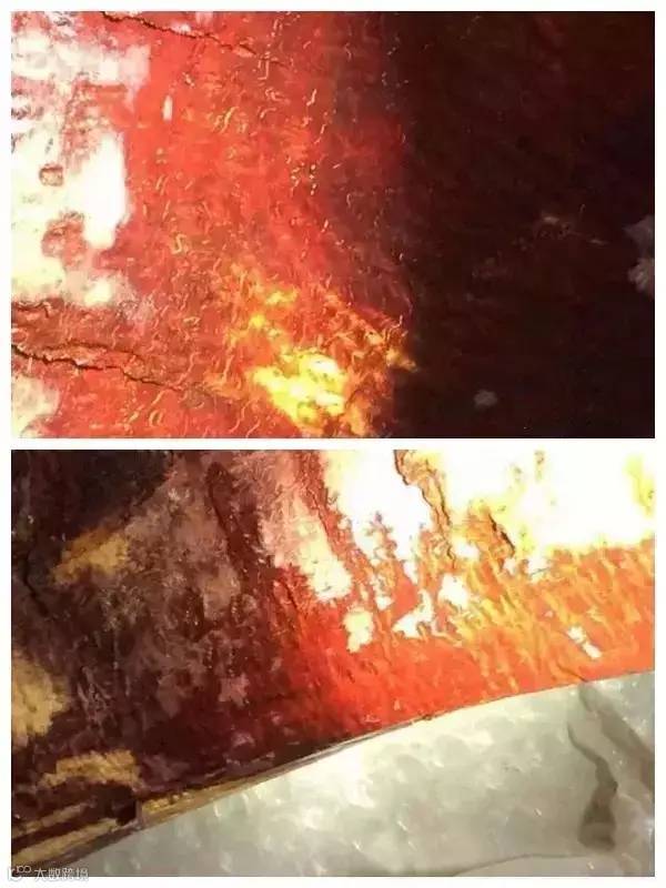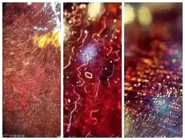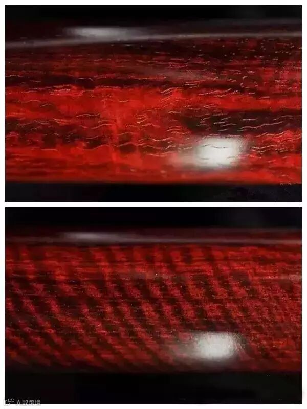 鱼鳞纹由于厚度问题,大部分鱼鳞纹是单面的,分大鱼鳞和小鱼鳞,双面360度全透即可称之为极品也