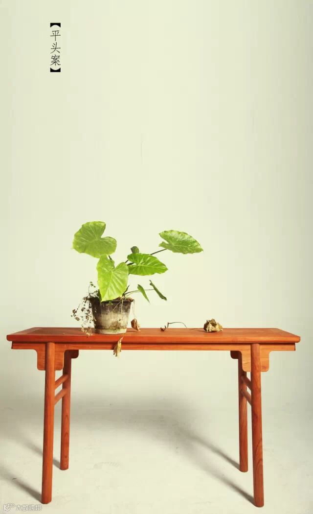 桌与案外形差异清晰,四足直抵四角为桌,四足从双侧缩进一段距离为案,与其尺寸大小高矮无关。案之形虽多变,以态势论仅三式,即翘头案、平头案、卷书案。翘头案两端翘起,形态飞扬,公事多用。平头案形态平和,置于书房,读书作画最为适合。