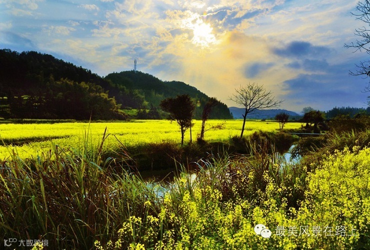 “莺飞草长三月天,油菜花开满山间”