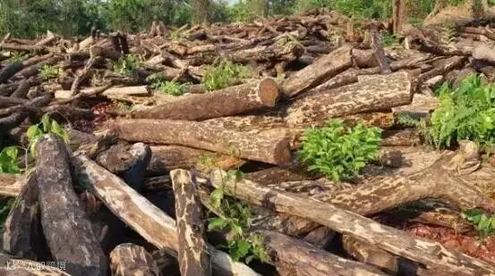 被采伐的染料紫檀原木