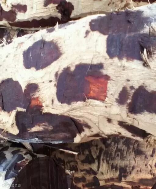 完全砍完皮,心材的外观就是这样的,一接触空气,氧化后就变成紫色。非常高贵的皇家颜色,做成的家具不上任何油漆,不上蜡,不上色,自然的状态,就让人爱不释手啊。现在很多红木家具都是上色上漆。