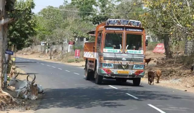路上的巴士和牛