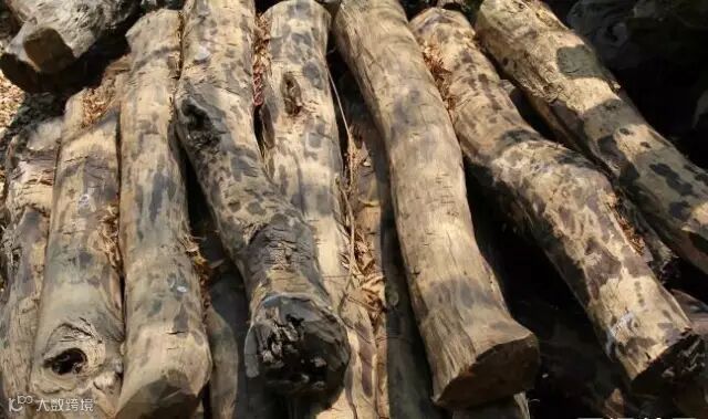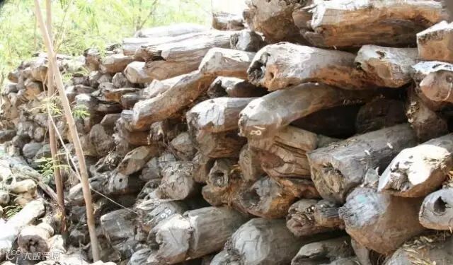 这是森林保护站十几年来罚没下来的小叶紫檀,都是偷砍被抓到的。估计有100多吨。长度不满2米,口径就15cm 左右,偶见有20cm,90%以上有空心。