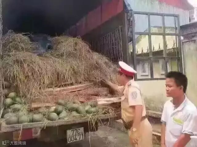 11月,越南,公安为了打击木材走私,天天查过往车辆,连挂着绿色标识的水果车都不放过。