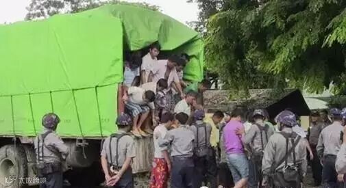 缅甸克钦邦首府密支那,在缅甸非法伐木的中国工人被押送到当地法院接受审判。