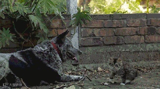 路遇恶犬,装疯卖傻!