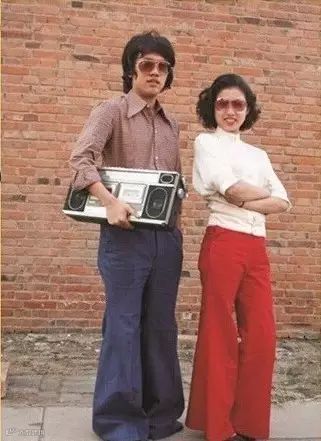 穿着拖把一样的扫地喇叭裤,戴着一副蛤蟆镜,身上再扛着一台收音机……我们时尚时尚最时尚。