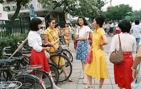 那时候的姑娘们喜欢穿五颜六色的长裙子,留着新潮发型。清新自然的她们,成为了城市间最亮丽的风景线。