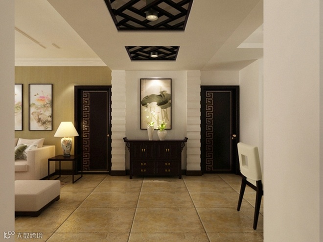 本户型特点是空间面积较大,经过设计师的精心设计很好的划分了格局。本户型遵循业主要求装成新中式风格,成熟稳重。客厅的电视墙采用白色护墙板上镶嵌中式花格,大气时尚,巧妙隐藏了卧室门。沙发墙则与玄关墙两边门对称。餐厅的墙面以简单为主,白色墙漆挂画,其余墙面造型都刷白墙,整体搭配给人感觉更加舒适。