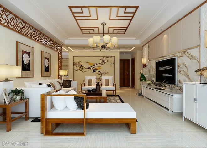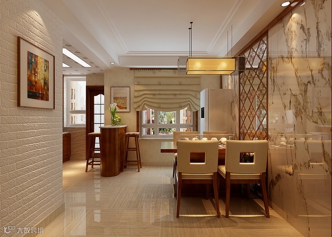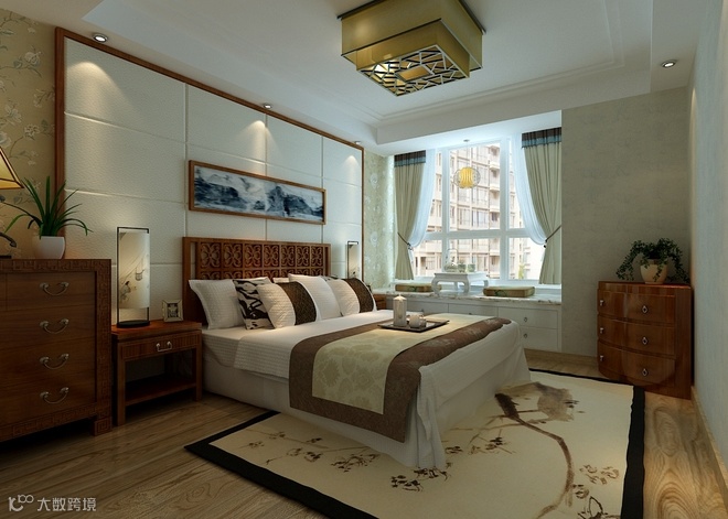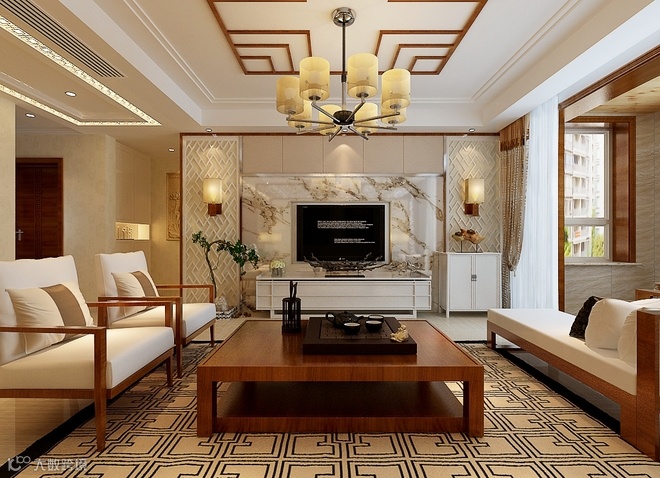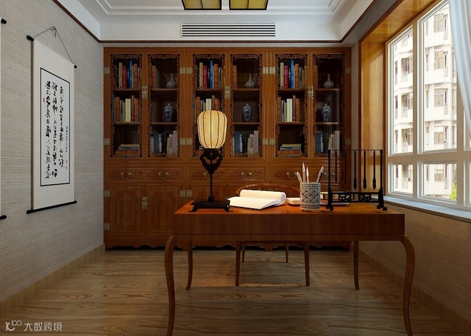 本案风格倾向定位为新中式风格。空间造型多采用简洁硬朗的直线,直线装饰在空间中的使用,不仅反映出业主追求简单生活的居住要求,更迎合了中式风格追求内敛、质朴的设计风格,使这种风格更加实用、更富现代感、更能被业主所接受。书房的书柜和灯笼式的灯饰展现了家居空间的古典文化韵味。在中式风格中更能展现出对历史的追溯,也能保留一些对中式风格执着的喜爱。在中国文化风靡全球的现今时代,中式元素与现代材质的巧妙结合,再现了精致小巧的中国式韵味。新中式性价比高又不流失中式文化传统,简化了线条勾勒出一幅美丽的风景。