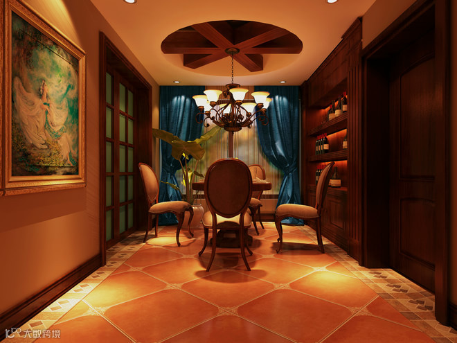 本案大面积为古朴木色,多使用定制家居。古香古色的色调以及典雅的装饰风格显示出主人的艺术品味与生活品质,它的整个装饰是量身定制的,一切浑然天成,除了护墙板以及定制家居的形式色调浑然天成,吊顶也是采用木质吊顶呼应木色地板,木制产品也是重要的中式元素,加上高亮的烤漆面层,也更加有时尚感。房子的灵魂是“家”,配饰上应该简单而不刻意,布局紧凑而不拥挤,不追求过分高档奢华,却也不粗放随便。一切的装修为了回归生活,提高品质。