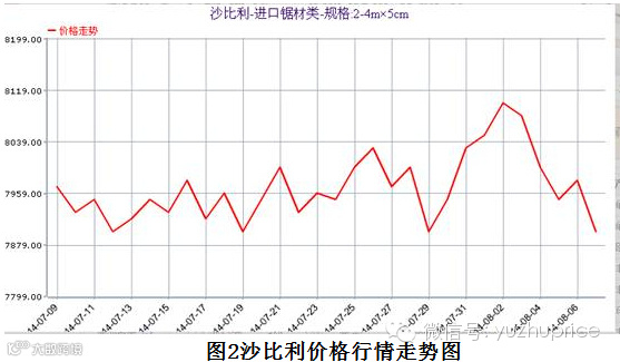 三、锯材指数稳中有涨沙比利报收7900元/立方米。