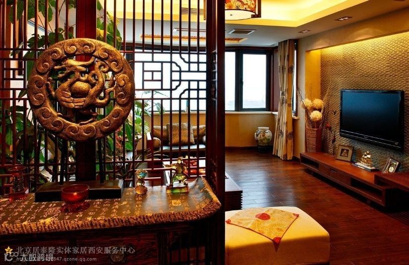 门厅设计--入眼处一派咄咄逼真的自然山水景观,凝眸处仿若从幽远的远古走来,浮雕中庸而低调,工艺繁琐,寓意吉祥。水帘相隔,水墨荷花点缀悠然青莲界 ,一池青莲荷花,将空间衬托的清新别致,朦胧中别有一丝神秘的古韵味。
