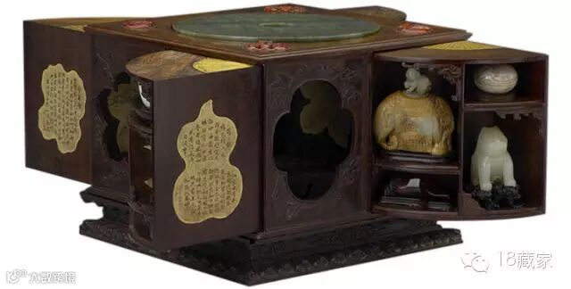 [清乾隆] 紫檀多宝格方匣(内附珍玩30件)