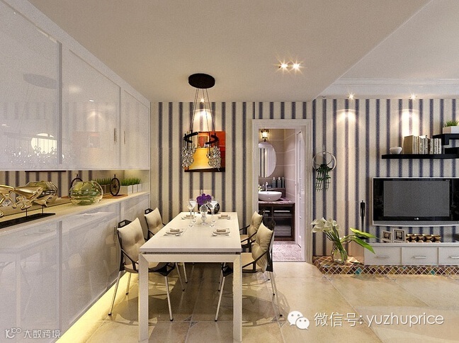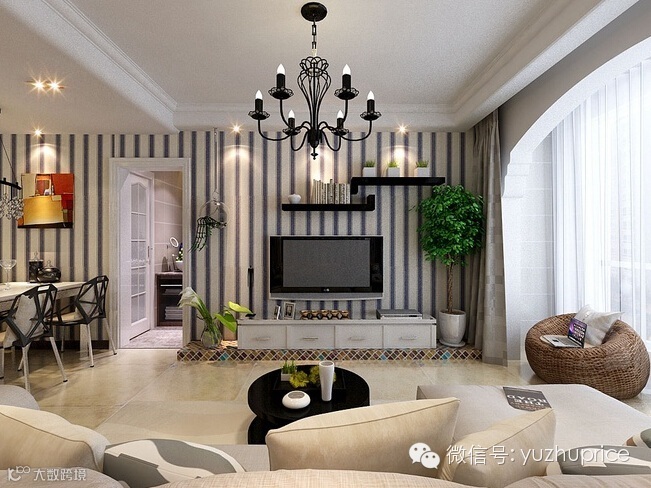 本案的设计风格随性而自然,真正将装修空间与设计完美的融合在一起,设计不像是后期人为附加上去,而像是从房屋本身生长出来,装修风格不见得奢华高贵,却非常适当。如果硬要说风格,应该是混搭风,有现代风格的家具,田园风格的吊灯和圆藤椅,家具颜色都是白色调,轻松休闲,墙纸是条纹的,配上屋内的白色调,映衬得家里明亮而干净。