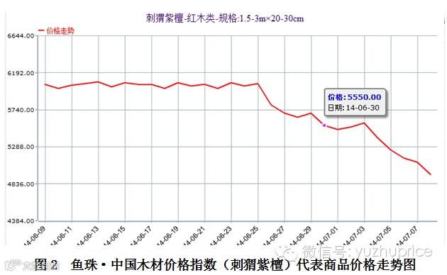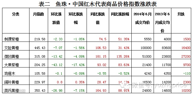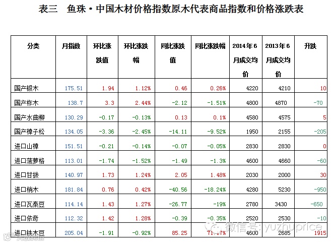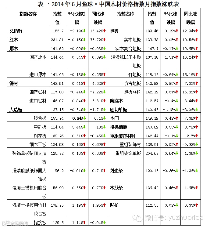 (一)经济大环境。统计数据显示,进入2014年以来,全国各地楼盘跟风降价呈现蔓延之势,无论是一线城市,还是二三线城市,大小房企们都搅进了这场“降价跑量”的战局。受此影响,国内木材市场举步维艰,木材的销量萎靡不振。 根据鱼珠·中国木材价格指数网监测数据显示,无论是高端材种的如红木,还是低端的材种如东北俄罗斯木材,在6月份的市场表现都是令人失望的。其中红木原材成交量大幅回落是6月大盘指数遭遇重创的关键因素。
