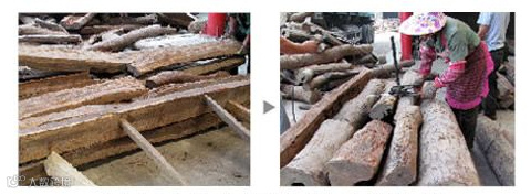 5、品相不好的木材不会轻易让人看到,打包后,上面还会增加品相好的木材以遮掩