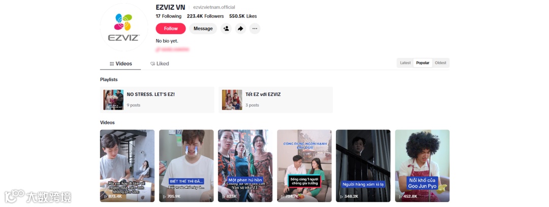 例如面向泰国市场运营的TikTok账号@EZVIZ VN,目前已收获约22万订阅。