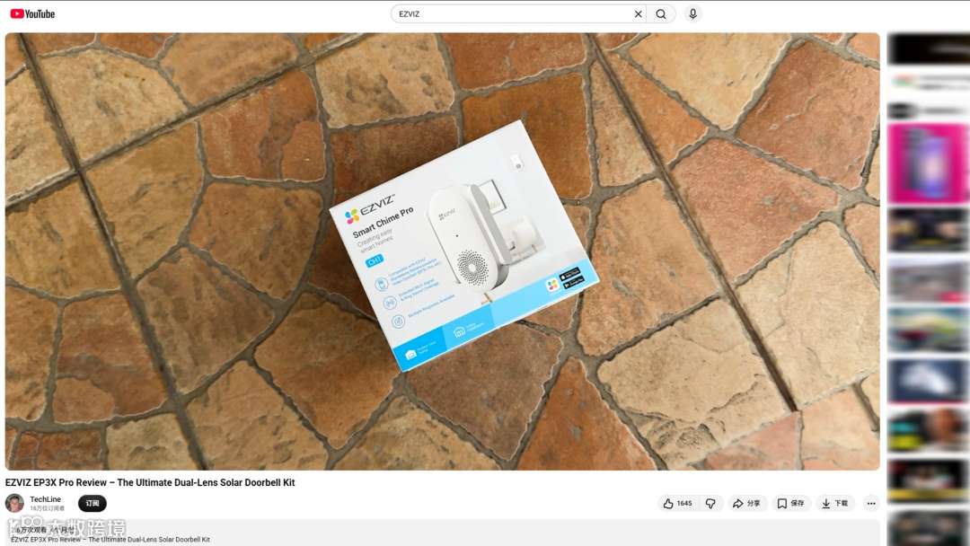 视频中@TechLineHD围绕EZVIZ EP3X Pro可视门铃套装展开,通过开箱、设计展示、安装过程、App体验与真实使用测试等多个环节,对产品进行系统化评测。
