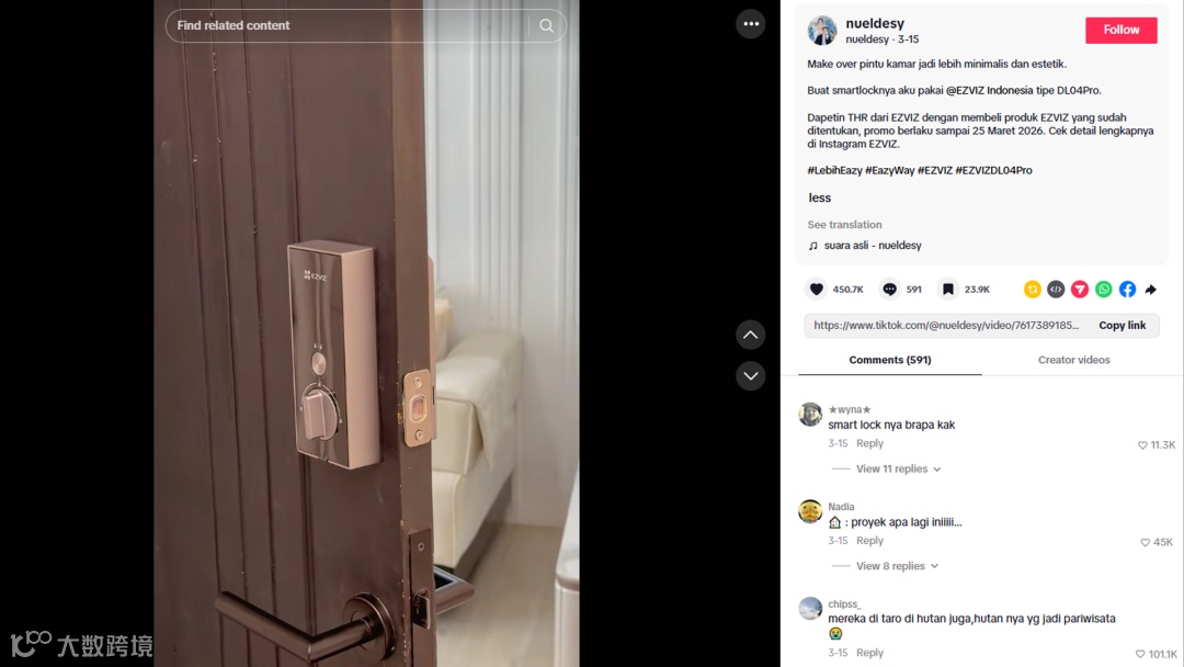 在TikTok上,EZVIZ萤石更倾向与家居与生活方式类达人携手,通过家庭安防、宠物看护与真实生活情境中的“安全瞬间”,将产品自然嵌入日常叙事之中,让用户在故事感中直观感知守护与安心。