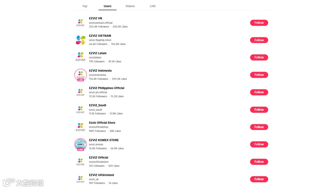 为实现对不同国家用户的精准覆盖,EZVIZ萤石在TikTok上采用多账号分区运营策略,摒弃“一个全球号通吃”的模式。