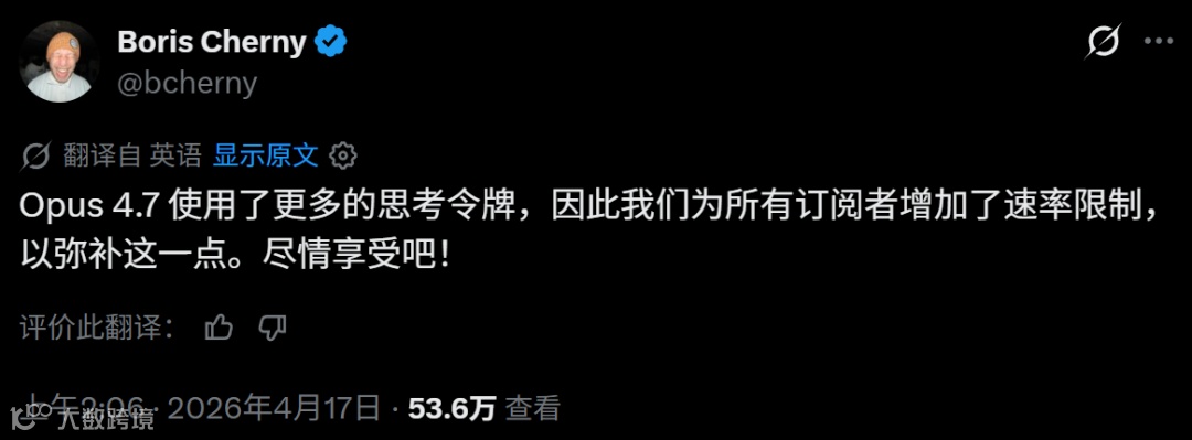 Anthropic 还编写了迁移指南(https://platform.claude.com/docs/en/about-claude/models/migration-guide#migrating-to-claude-opus-4-7),提供了从 Opus 4.6 升级到 Opus 4.7 的更多建议。