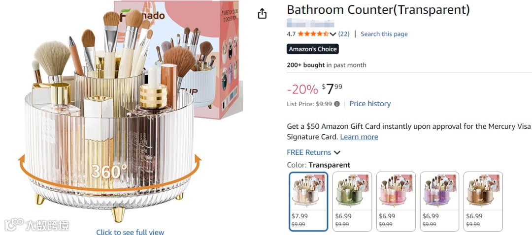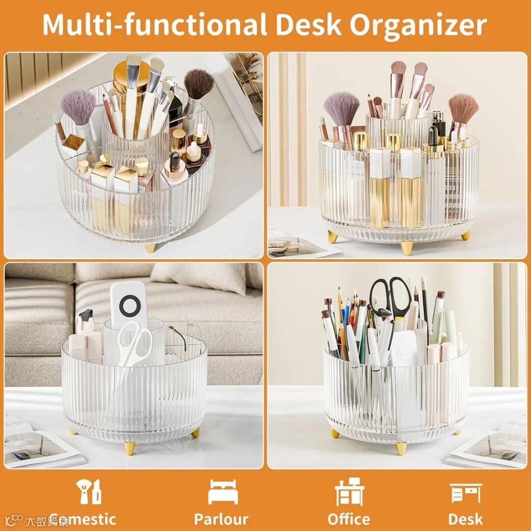 核心成交词:Rotating Makeup Brush Holder/Spinning Vanity Organizer(精准锁定“旋转”功能需求)。