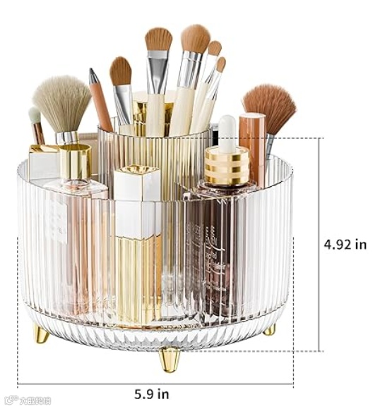 核心用途:解决化妆台“视觉贫民窟”的问题。它不是为了装大瓶乳液,而是为了收纳那些最容易乱丢的:笔、刷、口红、眉笔。消费心理很简单:花不到 10 刀,买一个“瞬间整洁”的治愈感。