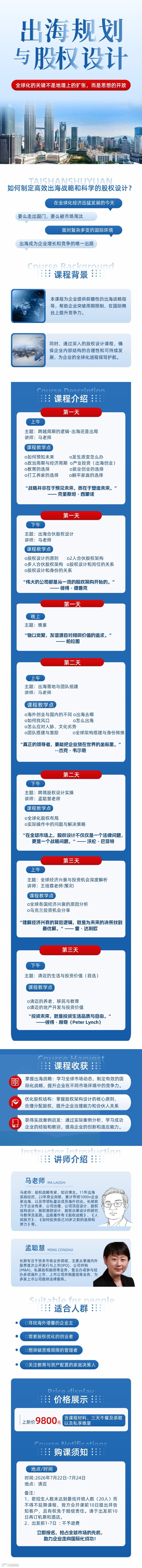 《出海规划与股权设计》,全球身份、资产、教育、创业配置,一站式全面分析,课超所值!
