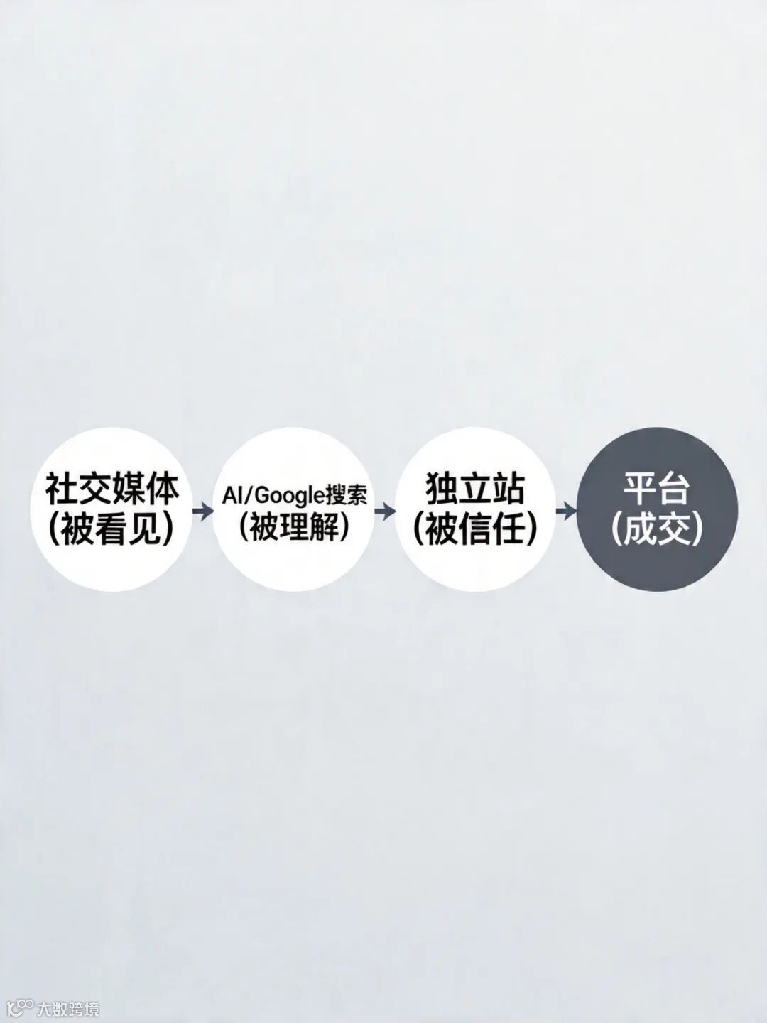 但如果你能把内容、搜索、独立站和履约接起来,你才有机会进入更前面的几步: