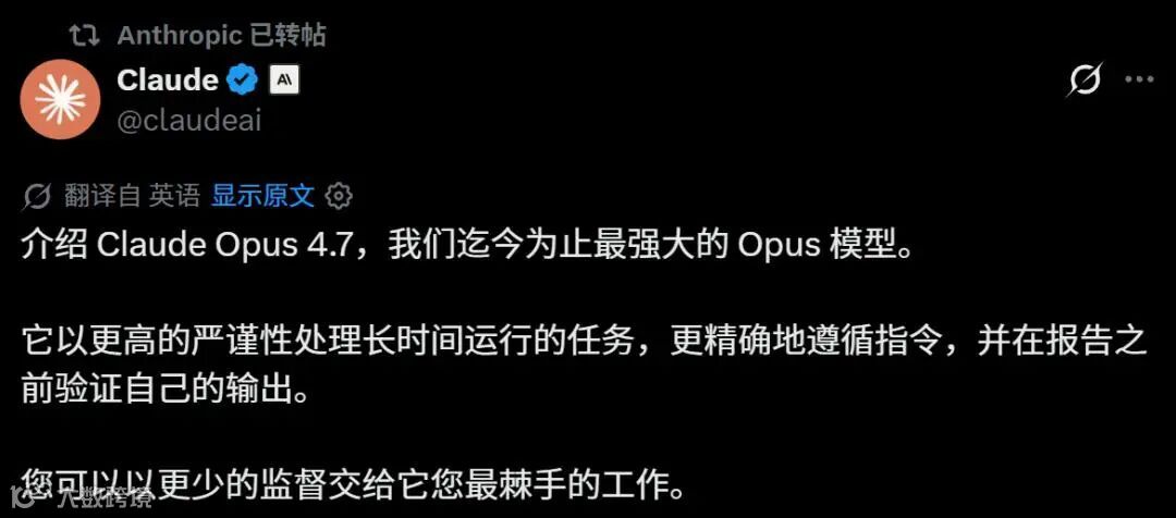 Claude Opus 4.7,来了。