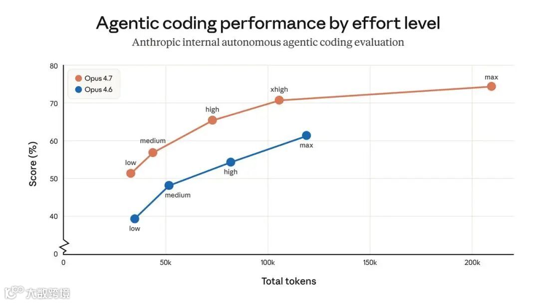 Opus 4.7更换了分词器,相同输入Token量约增1.0-1.35倍,高Effort下输出Token也会增加。这对Claude应用普通用户,主要影响额度和响应体验;对使用龙虾、Hermes Agent等API的用户及团队客户,则直接增加成本。