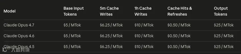 好在Opus 4.7未涨价,与4.6、4.5定价一致,只是该定价本身已偏高。