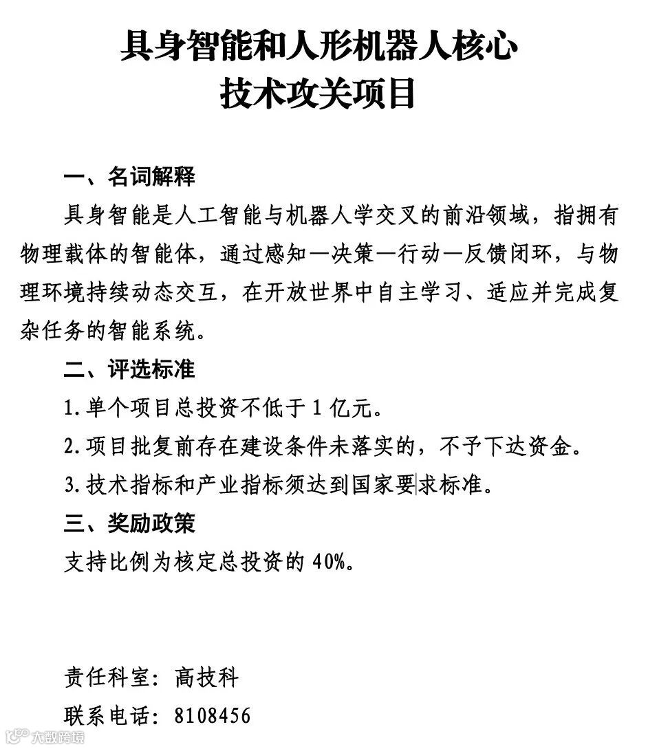 惠企政策申报指南|具身智能和人形机器人核心技术攻关项目