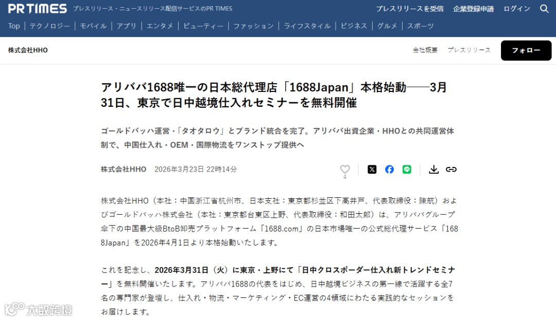 表面上,这是1688进一步布局海外市场;但从行业角度看,这更像是在释放一个非常明确的信号:日本采购代行,正在进入规模化爆发期。
