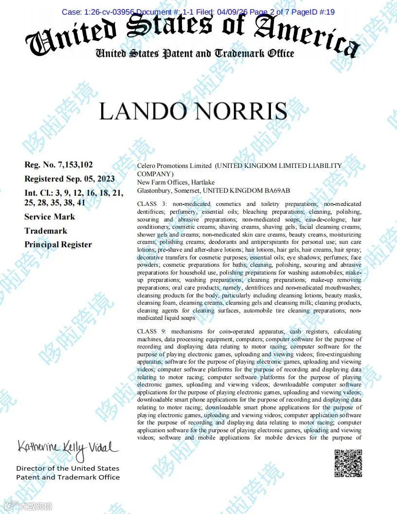 中直接使用 LANDO NORRIS或L4NDO字样。 -