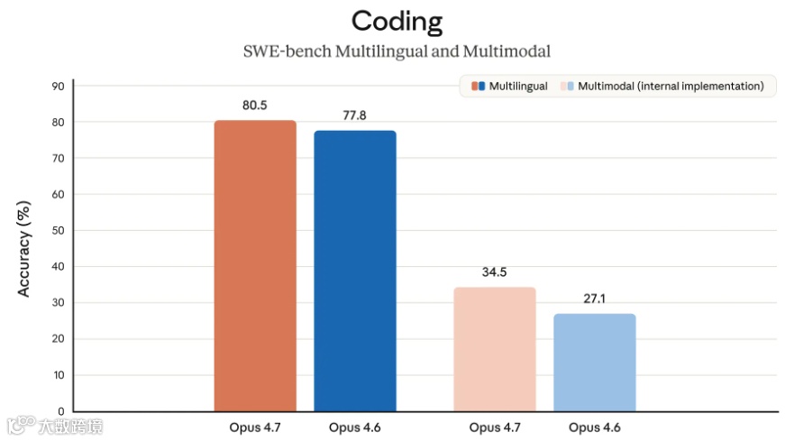 代码能力实测数据亮眼:CursorBench测试得分从58%(Opus 4.6)提升至70%(Opus 4.7)。Notion团队验证显示模型性能整体提升14%,首次通过隐性需求测试,展现对工程潜规则的理解能力。