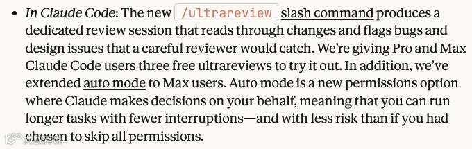 Opus 4.7强化了任务执行能力与自我纠错机制,Claude Code新增/ultrareview深度代码审查指令。