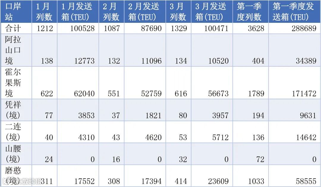 中亚班列口岸数据