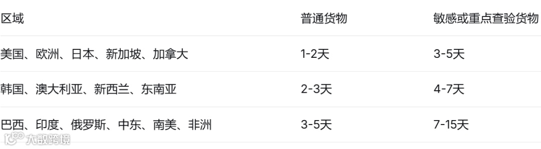 注:以上时效基于工作日计算,周末及节假日不计入。大促或清关高峰期可能延长1-2个工作日。