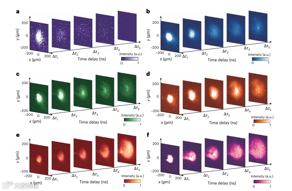 超快显微成像显示:该等离子体球20纳秒内形成约80微米内核,持续膨胀至200微米以上仍保持球形轮廓。六波段滤光观测揭示层次结构:蓝紫色内核对应高温氩离子辐射,深红色外层源于中性氩原子荧光。内核光谱随时间衰减,外层辉光持续增强,呈现类似恒星冷却过程。