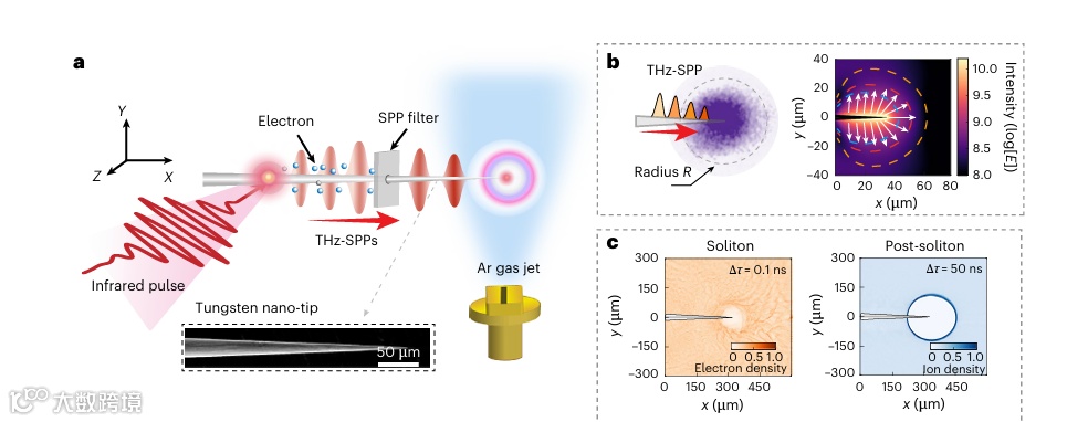 研究团队采用飞秒激光照射50纳米钨针尖,激发出太赫兹表面等离子体极化激元。该电磁波在针尖产生超100亿伏/米电场强度,瞬间电离8大气压超音速氩气流。通过电子响应与离子动力学两阶段过程,辐射压、库仑力与热压力达成动态平衡,形成电磁能量囚禁结构。