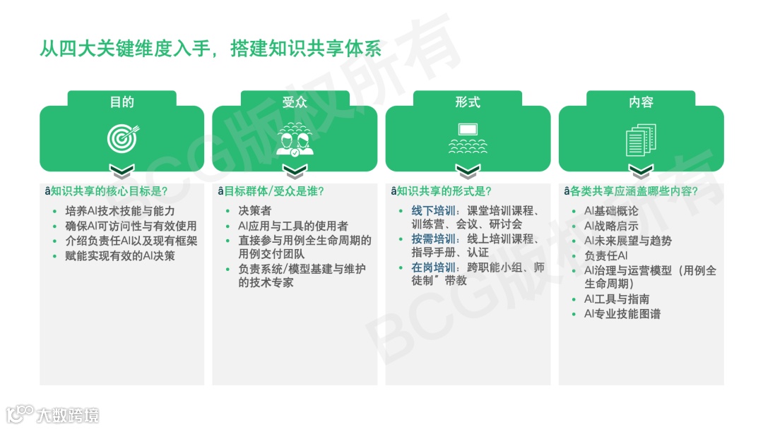 构建覆盖决策者、业务用户、交付团队及技术专家的全周期知识体系。决策层需培养战略前瞻性;业务用户重在掌握工具操作与伦理规范;技术团队则深耕算法原理与工程实践。